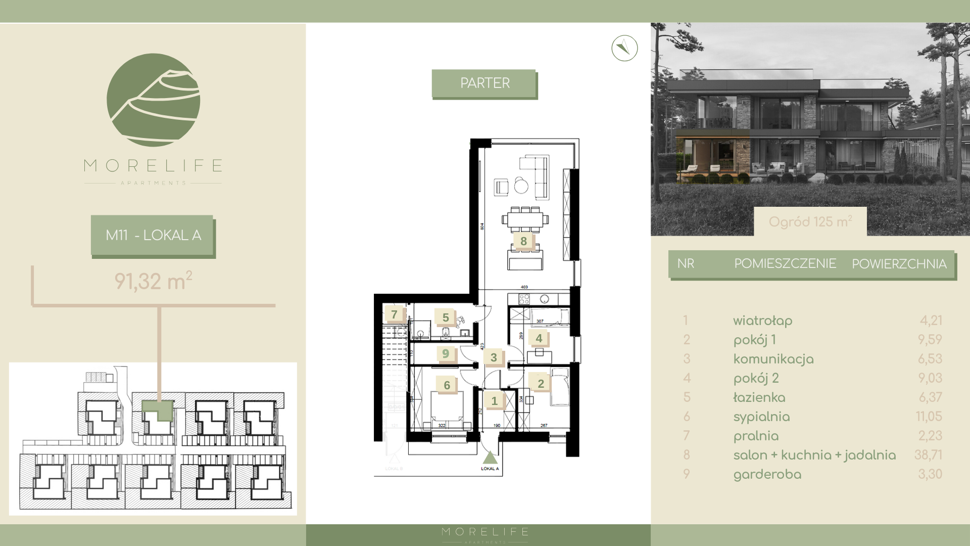 Morelife Apartments to projekt zlokalizowany w zielonej części Krakowa – Woli Justowskiej. Wyjątkowy, nowoczesny i przemyślany projekt. Inwestycja przyciąga wzrok pod kątem wizualnym ale zapewnia również wszystkie udogodnienia praktyczne. Inwestycja wykonana jest z dbałością o najdrobniejsze szczegóły, zwracając uwagę na trendy panujące w nowym, prestiżowym budownictwie.