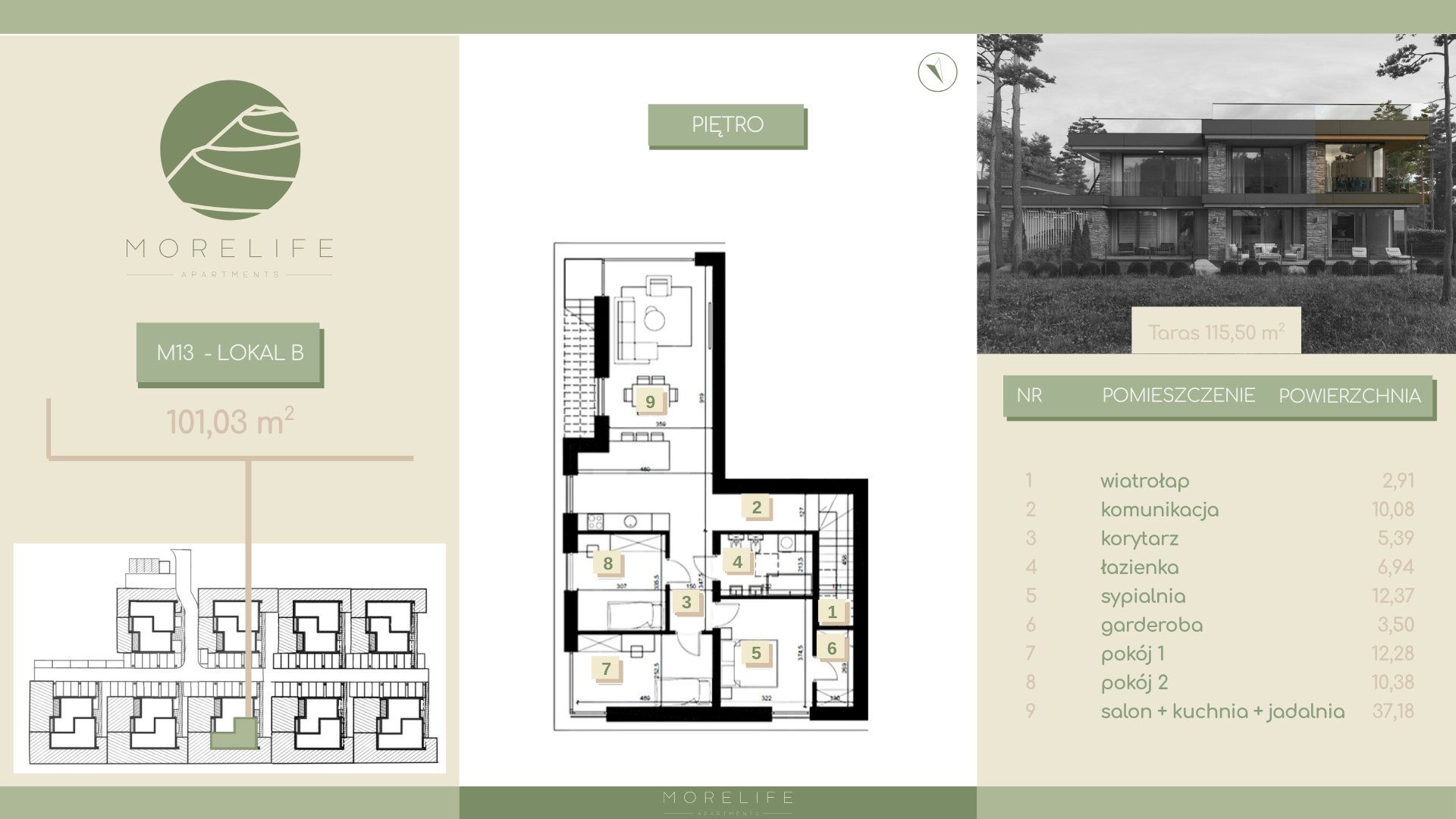 | M13-2 | 4 | 101,03 m2 | brak | 115 m2 | 18 900 zł | 1 909 467 zł | Rezerwacja | ZOBACZ ZOBACZ | PROSPEKT |
